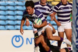 白:明治のラグビーとして、前に出るガツガツしたプレーはもちろんそうなんですけど、縦だけじゃなくてしっかり横にも振るラグビーであったり、直球だけの勝負じゃなくて、スマートに変化球も入れたラグビーを心がけて、チームが優位に戦えるようには明治として挑んでいきたいです。
