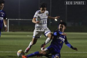 58分、永澤からボールを受けた齋藤真が左サイドをドリブル突破し、中へクロスを送る。ファーサイドで待っていた村井が反応しシュートを放つもこれは大きく枠を外れる。このまま流れを掴みたい慶大は64分に村井に代えて三浦大其(経2・慶應)を、70分に藤井に代えて辻野悠河(商4・暁星国際)を、73分に藤平に代えて霜田晟那(理1・都立八王子東/FC町田ゼルビアユース)を投入し攻撃の活性化を図る。