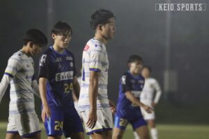 10人で戦うことになった慶大は相手の攻勢を止めることができず、90+4分、自陣右サイドの深くのスローインから相手フォワードがキープ。そこから強引に中を突破しシュートを決められ追加点を許す。試合はこのまま終了し1-3での悔しい敗戦となった。インカレ出場を目指す中で痛恨の敗戦となったが、落ち込んでいる暇はなく中3日で11位、流通経済大学戦を迎える。次節は主力選手が複数出場停止となるが、チーム全員でカバーして勝利をつかみ取りたい。