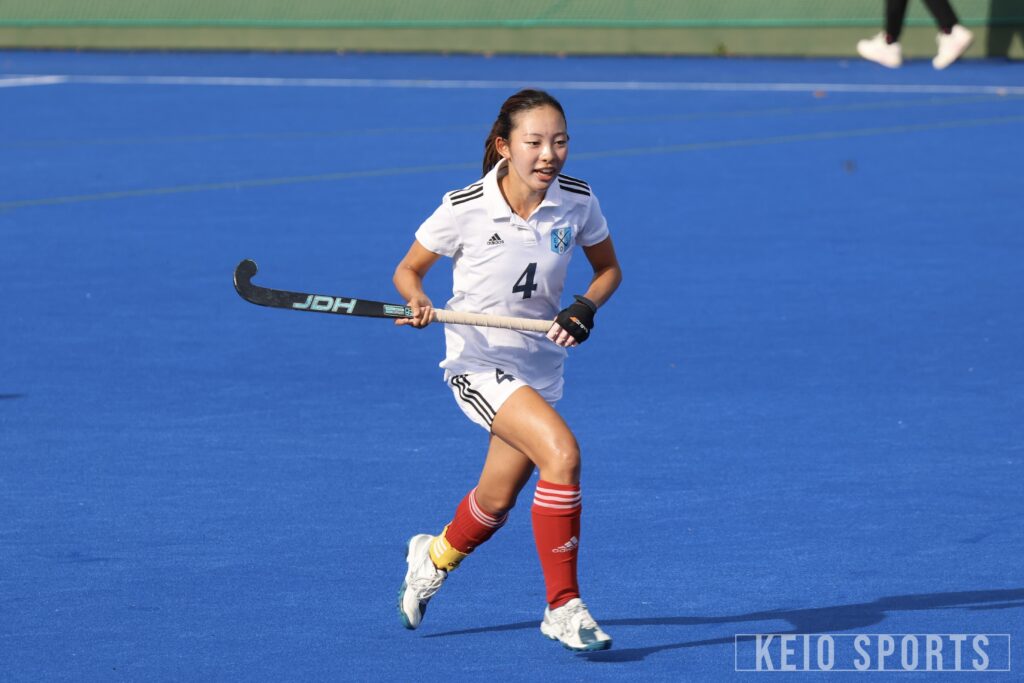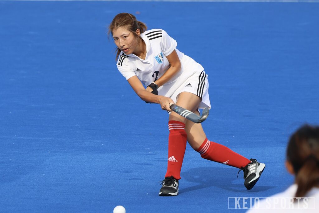 秋季リーグ初戦の駿河台大戦は、苦しい幕開けとなった。大学からホッケーを始めた選手が大半を占める慶大に対し、駿河台大は大半が経験者。パスの速度や強度に圧倒され、相手のプレーを読みながらも止め切ることができず。無失点に抑えたかった第1Qで、2失点。第2Qにも1点を献上し、0ー3で試合を折り返す。少しでも点差を縮めたい慶大だったが、幾度もサークル内への侵入を許し第3Qに痛恨の4失点。さらに第4Qにも2点を許し、0ー9で試合終了。強豪・駿河台大に敗れ、黒星発進となった。主将/FW・新井里英(政4・成城学園)は「もっとサークルの外で、守備を強化して守り抜きたかった」としながらも、「駿河台は、全員が慶應よりも上手いチーム。そんなチームと戦えたことが守備力UP、1対1の強度を進化させる上で後につながる試合だった」と試合を振り返る。