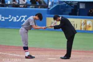 その裏は今秋リーグ戦デビューを果たした熊ノ郷が登板。先頭打者に中安を許すも、この日最速150km/hをマークした自慢の直球で押し切り、最後は代打・藤平愛也(政経2・八千代松陰)を空振り三振に仕留め9ー4で勝利。これで慶大は、23年秋季からフレッシュトーナメント5連覇を達成した。