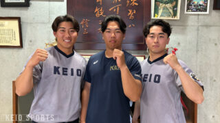 2回、7番・清原勝児(商1・慶應)が1死から中前安打で出塁し、続く青山琉生(経1・刈谷)の死球で1死一、二塁のチャンスに。9番・井上雄貴(文2・岐阜)の当たりは内野安打となり、満塁とするも、山本海、北川が打ち取られ無得点に終わった。その裏、1死から連打を浴び、再び1死一、二塁のピンチ。しかし、続く打者を遊併殺打に仕留め、得点を許さなかった。
