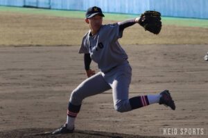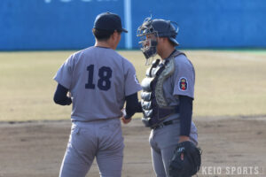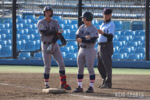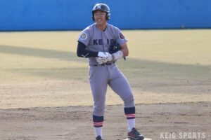2回、慶大打線は2死から清原勝児(商1・慶應)の死球、北川昴生(総2・広島新庄)の右前安打で一、三塁と好機をつくる。しかし、8番・斎藤開地(商2・県立前橋)は空振り三振に倒れ先制点とはならない。その裏、先発・加賀城は2死から四球、安打と繋がれ、一、三塁のピンチを招くも、中森昴(建築1・敦賀気比)を空振り三振に斬って取り、こちらも先制点を許さない。