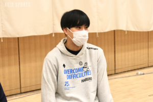 入来:一番おもしろい景色を見にいきたいなと思っています。さっき言ったように、自分は目に見えるものを大切にするんですけど、試合に勝ったときに泣いて喜ぶ人も何人かいるくらい、感情豊かなチームなので、自分に託してくれている思いも大きくて。自分自身もそんなみんなに支えられたなと思っています。同期だと康生(=山元康生、法4・慶應)や山木柊(文4・慶應湘南藤沢)だとか。後輩もしっかり着いてきてくれて。最後にみんなでおもしろい景色を見れたら満足して終われるんじゃないかなと思うので、勝利のためにしっかりと計算して、やっていけたらいいなと思います。