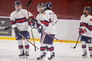 勢いに乗った慶大はその後、この日2本目のゴールとなる栖原の一発とFW・ラカラ・ロッコ(総1・Burnaby Central Secondary Schoolのシュートも決まり、第1ピリオド を4-0で終える。