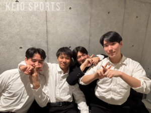 奥本:花形の4年生が気持ち良くプレーして、「良かったな。」と思える早慶戦であるための土台作りが必須だと思うので、4年生に合わせられるようなプレーをしたいです。