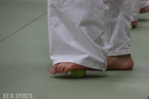 足の裏をほぐすという趣旨でやっています。半年前くらいにOBの方のご協力を得てフィジカルトレーナーをつけていただきました。その方から「足の裏をほぐすとけがが減る」とアドバイスをいただいて、取り入れた形です。