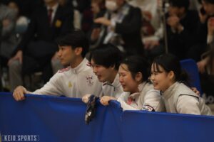 この早慶戦に今までの自分の全てと、今後の慶應フェンシング部の未来を懸けていたので、多くの方の心に残るような試合をチーム全員でできてよかったと思います。総合優勝は逃し、大変悔しい思いはありますが、やるべきことはやり切ったと思います。それが足りなかったから、総合優勝できなかったというだけです。やっと肩の荷が降りたという想いと、本当に幸せだったという想いと、部員に会えなくなることの寂しさと、いろいろと感じております。ただ、まずは、本当に関わってくれた全ての方へ感謝申し上げます。