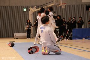 フルーレで2勝。これはフルーレチームの一年間の目標です。これを現実にするためにリーダーをやっていました。喜びという言葉では表現しきれません。なんでしょうかね、ここまでいろんな苦しいことがあって、挫けそうになったこともたくさんありましたが、人を信じ続けてよかったといったところでしょうか。女子は勝つのが厳しいと多くの人に言われていましたが、自分は絶対に勝ってくれると信じていました。結果論ですけれどね。この結果は本当にみんなのおかげ、フルーレの20人全員に感謝を伝えたいです。
