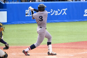 下級生から出るってすごいなという気持ちもあります。高校時代もそうだったのですが、高校2年生の新チームの時は僕はスタメンではなくて、高校3年生の春のセンバツから夏まででスタメンとして出ることができたので、スタートが遅いというのは高校時代も同じでした。ここから先に出てる人よりも、さらに上でやっていく自信はあるので、抜かせるように早く頑張りたいです。