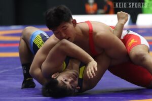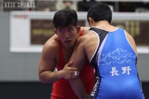 フリースタイル92㌔級とグレコローマン97㌔級、両方での出場を果たした佐藤秀一郎(環3・八千代松陰)。メダル獲得に向け、まずはフリースタイル92㌔級での勝利を目指す。