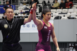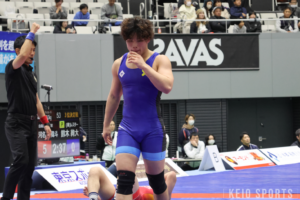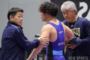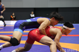 2戦目の相手は25年世界選手権74㌔級金メダリスト・髙橋海大(日本体育大学)。前日、兄の髙橋夢大(三恵海運株式会社)に慶大・岡澤ナツラ(法1・慶應)が敗れている。慶應義塾高時代からの盟友の雪辱を果たすため、勝利したいところだったが、世界チャンピオンの壁は高く、第1ピリオドでテクニカルスペリオリティ負けを喫した。それでも、間違いなく大きな経験を積んだ瀧澤。この一戦は、今後の3年間の財産となるだろう。