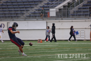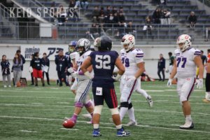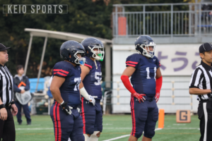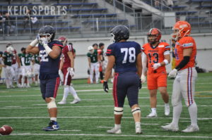 青山学院大との入れ替え戦で、残り4秒の攻防を制して1週間。この日、関東学生アメリカンフットボール連盟1部で今季活躍した選手が一堂に会するオールスター戦が行われた。 慶大からは、DL・天野甲明(政3・鎌倉学園)、P・加藤雄大(理2・本郷)、DL・山田向洋(経3・慶應)、C・大坪英泰(政4・佼成学園)、OL・岩戸旦和(経3・慶應)、DL・作田太一(法4・慶應)の6名が、TEAM SOUTHのプレイヤーとして選出された。試合は、早大、東京大、立大、中大、日体大、駒大、国士舘大、帝京大の選手で構成されたTEAM NORTHと、明大、法大、慶大、青学大、横国大、明学大、東海大の選手で構成されたTEAM SOUTHに分かれて行われた。なお、通常は1Q12分制で行われる日本の大学アメリカンフットボールだが、本試合では1Q10分制が採用された。