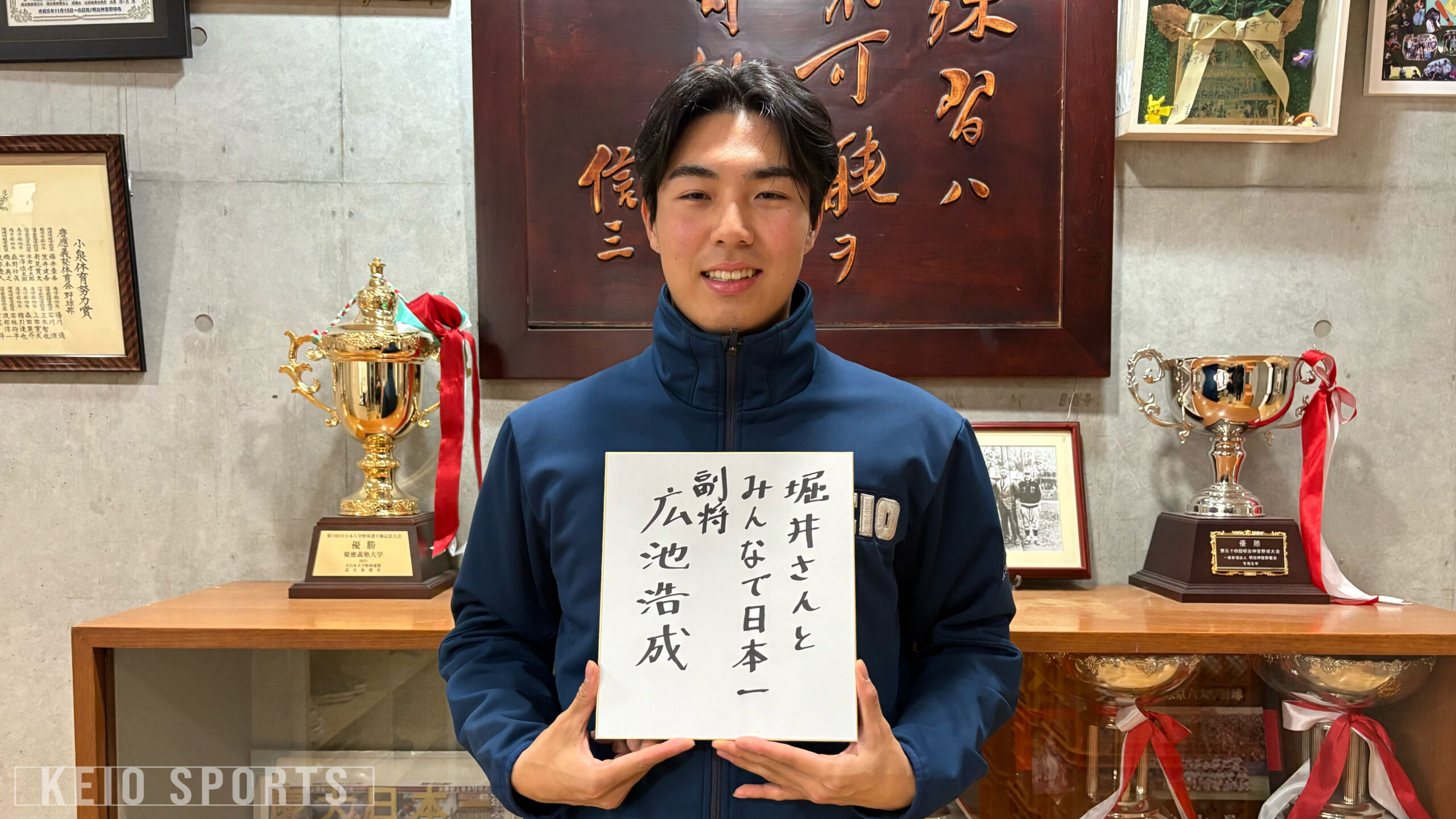 昨年の慶大は春季リーグ戦、秋季リーグ戦ともに5位という悔しさの残るシーズンとなった。そして12月19日、令和8年度慶応義塾大学体育会野球部の新幹部が発表された。主将に一振りで流れを変える強打者・今津慶介(新総4・旭川東)、副将に剛球と知性を併せ持つ大型右腕・広池浩成(新経4・慶應)、規律でチームを引き締める新戦力・寳田裕椰(新経4・三重)、経験豊富な内野の要・上田太陽(新商4・國學院久我山)が就任。また、沖﨑真周主務(新経4・幕張総合)や山口瑛士(新商4・県立郡山)ら学生コーチ、スタッフ陣の発表も併せて行われた。今回ケイスポでは、今津主将、広池副将、寳田副将、上田副将、沖﨑主務に取材し、2026年慶大野球部の「強い慶應復活」に懸ける思いを伺った。第1弾は広池浩成副将!