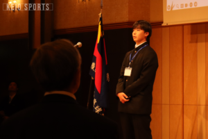 主将の眞田将吾(新環4・四日市工業)の部歌斉唱と應援指導部によるエールで幕を閉じた庭球部125周年記念式典。軟式から硬式へと舵を切ったことが功をなした慶大庭球部。現在も横浜慶應チャレンジャーなど変化することを恐れず挑戦を続けている。150周年、そしてその先の未来に向けて、庭球部は進化を続ける。