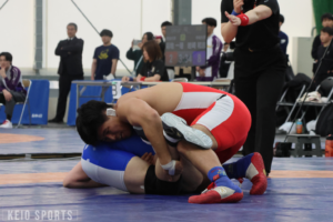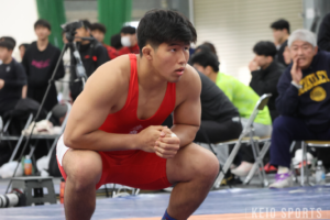 試合終了が告げられた瞬間。シングレットを着ているときはなかなか見せない笑顔がこぼれた。小学校1年生の頃からのレスリング人生。一度も届いていなかった日本一をついに成し遂げた嬉しさが表情からにじみ出ていた。この結果、10月にラスベガスで行われる2026年U23世界選手権大会への出場が決定。慶大の男子部員が世界選手権大会に出場するのは57年大会銅の島村保行以来69年ぶりの快挙。女子部員では26年春に慶大を卒業する尾﨑野乃香(環4・帝京)が通算4度出場している。