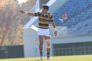 2025年12月14日、かつて今野が日本一を成し遂げた花園ラグビー場で、再び頂を目指すための戦いが幕を開けた。相手は地元関西に本拠地を置く京産大。多くの赤紺ファンの声援に後押しされ、フィジカルに優れる選手を有する京産大に対し、慶大は今野がまとめあげた組織力で対抗した。今野がタクトを振るったBK陣を中心に、多彩なアタックで相手を翻弄し、5トライを挙げた。