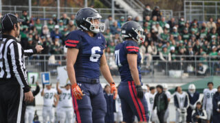 (チームにとって大きな勝利になりましたが)いつも後半戦の初戦で負けて、そこから負け続けていたので、ここで勝てたことが次への弾みになると思います。この勢いで甲子園ボウルに行けたらいいなと思っています。(試合の流れを振り返って)ディフェンスで止めて、オフェンスで点を取る形で先制できたのが一番大きいです。いつもは、入りは良くても後半で押されてしまって負けるパターンが多かったのですが、今日は最後まで勢いがあって、ディフェンスが止めて勝てたので良かったです。(ディフェンス陣について)まだ一人一人の仕事ができていない部分があるので、課題はあると思います。それを修正して次の試合に臨みたいです。(3Qのインターセプトを振り返って)前半戦はケガをしていて、今回の早大戦が復帰戦でした。結果オーライな部分もありましたが、ここで全員に認めてもらうことができたのがすごく嬉しかったです。これからもボールを狙えるように頑張ります。(日大戦に向けて)自分の取り柄はボールを狙って取ることだと思うので、日大戦でもボールを狙っていきます。チームとしては、ここでせっかく早大に勝っても次で負けてしまっては意味がないので、集中力を切らさずにこの勢いに乗って臨みたいです。