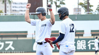 中村健:そうですね、チーム始まったときから監督のほうから早稲田に絶対に全部勝つ、慶應のユニフォームを着て早稲田に負けないんだっていうことをもう一回チームの目標にしてやっていこうっていう中でした。初戦はそう上手くいかずに負けてしまった中で、全員で粘って勝ち越せたっていうのはチームとしてやってきたことが結果となって表れて得るものがあったなっていう風に思います。