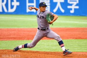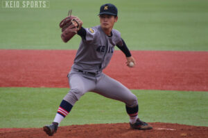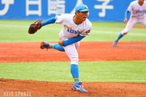 裏の守り、慶大は小松が生んだ鉄腕・小川琳太郎(経4・小松)をマウンドに送る。小川琳は2つの三振を奪うなど安定した投球で、相手に傾きかけた流れを取り戻す。