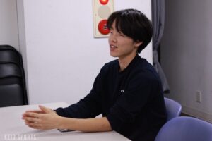 芦野:僕は大学受験の勉強を途中で嫌になって投げ出してしまって、そこで投げ出したら(今後も)諦めるようになっちゃうよ、と(高校の)先生にも言われながら(結局は)投げ出してしまい、慶應義塾大学に来ました。その中で、じゃあ自分が続けていけるものは何だろう、投げ出さないでいけるものは何だろうって考えた時に、陸上まで投げ出したら本当に全部なくなっちゃうなって思って。陸上は中学校から頑張ってきたことだし、続けていったら何か良いことあるかな、という感じで(入部を決めた)。陸上は”最後の砦”のような存在であってくれたかな、と思います。