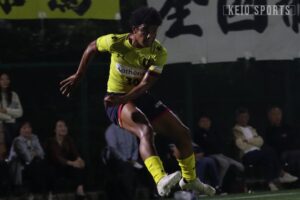 59分、辻野に代えて小野翔大(経2・慶應)を投入。中盤でのテンポを変え、攻撃のリズムを生み出そうと試みる。しかし、その直後の62分、バイタルエリアでボールを受けた相手FWにうまく体を入れ替えられ前を向かれる。そこから鋭くポケットへ侵入され、ペナルティアーク付近にいた味方へとパス。受けた選手がダイレクトで放ったシュートをGK洪潤太(政4・東京朝鮮中高級学校/三菱養和SCユース)が一度は弾いたものの、こぼれ球を押し込まれ、痛恨の追加点を許してしまう。