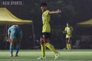 77分、この日2試合目のスタメン出場となったオノノジュに代えて、梅野真生(総2・成蹊/横河武蔵野FC U-18)を投入。前線に新たなエネルギーを注ぎ込み、攻撃の活性化を狙う。さらに88分には、齋藤真に代えて金鶴航輝(政4・成城学園/FCトリプレッタユース)を投入し、終盤にかけて一層の攻勢を強める。しかし90分、スローインの流れから右サイドをドリブルで突破され、最後はゴール前で押し込まれ痛恨の3失点目。あと一歩及ばず、試合の行方を決定づけられてしまった。