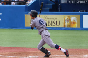 8、9回は田上が持ち直し無失点に抑えたが、打線は斎藤、吉野ら立大救援陣の前に沈黙。8回には竹田一の代打・森村輝(総4・小山台)が死球で出塁するも、途中出場の服部翔(政2・星陵)が初球で痛恨の二併殺打。9回は加藤右悟(環1・慶應)、今泉将(商4・慶應)の代打攻勢も実らず、最後まで得点を奪えなかった。慶大は序盤の失点を埋めきれず、痛い黒星となった。
