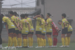 試合は序盤から慶大のペースで進む。19分、CKから守部葵(環4・十文字)がゴールネットを揺らすも、惜しくもオフサイドの判定。その後もゲームを支配し、前半だけで11本のシュートを放ったが、いずれも得点には結び付かずに試合を折り返す。後半は開始から2枚代えで攻勢を強めたが、上武大も集中力を切らさずに守り続け、スコアレスでアディショナルタイムに突入する。95分、森原日胡(総1・作陽学園)がクロスに合わせ、待望の先制点かに思われたが、これもオフサイド。ほとんどの時間でボールを保持し、26本のシュートを放ちながらも、相手の堅守を前にゴールを奪うことは出来ず、引き分けに終わった。