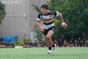 大悟さん(山本)が良いボールキャリーをしてくれて、そこに自分がついて良い連携が取れて、最終的にトライに繋ぐことができました。そこまでの過程としては、慶應が勢いづいてきて、1人1人が前に出るというのをしてくれたおかげで僕がトライできたので、全体的にあの慶應としてのアタックが良かったかなと思います。