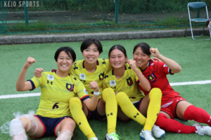 最終節で白星を挙げ、2部優勝および1部昇格を決めたソッカー部女子。3年時にフィールドからキーパーに転向する大きな決断を下し、ゴールを守り続けてきた守護神・中村美桜(理4・慶應湘南藤沢)に試合後インタビューを行った。