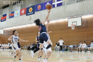 序盤から攻守にわたって圧倒し続けた慶大。東大を相手に終始流れを渡さず、114得点を挙げる快勝を収めた。4年生を中心に主導権を握った序盤に続き、後半にかけて榎本京佳(経2・慶應女子)、松岡優希乃(商2・都立国立)など下級生も存在感を発揮。全員が積極的にゴールへ向かう姿勢を貫き、六大学対抗戦初戦からチーム一体となった戦いを見せた。