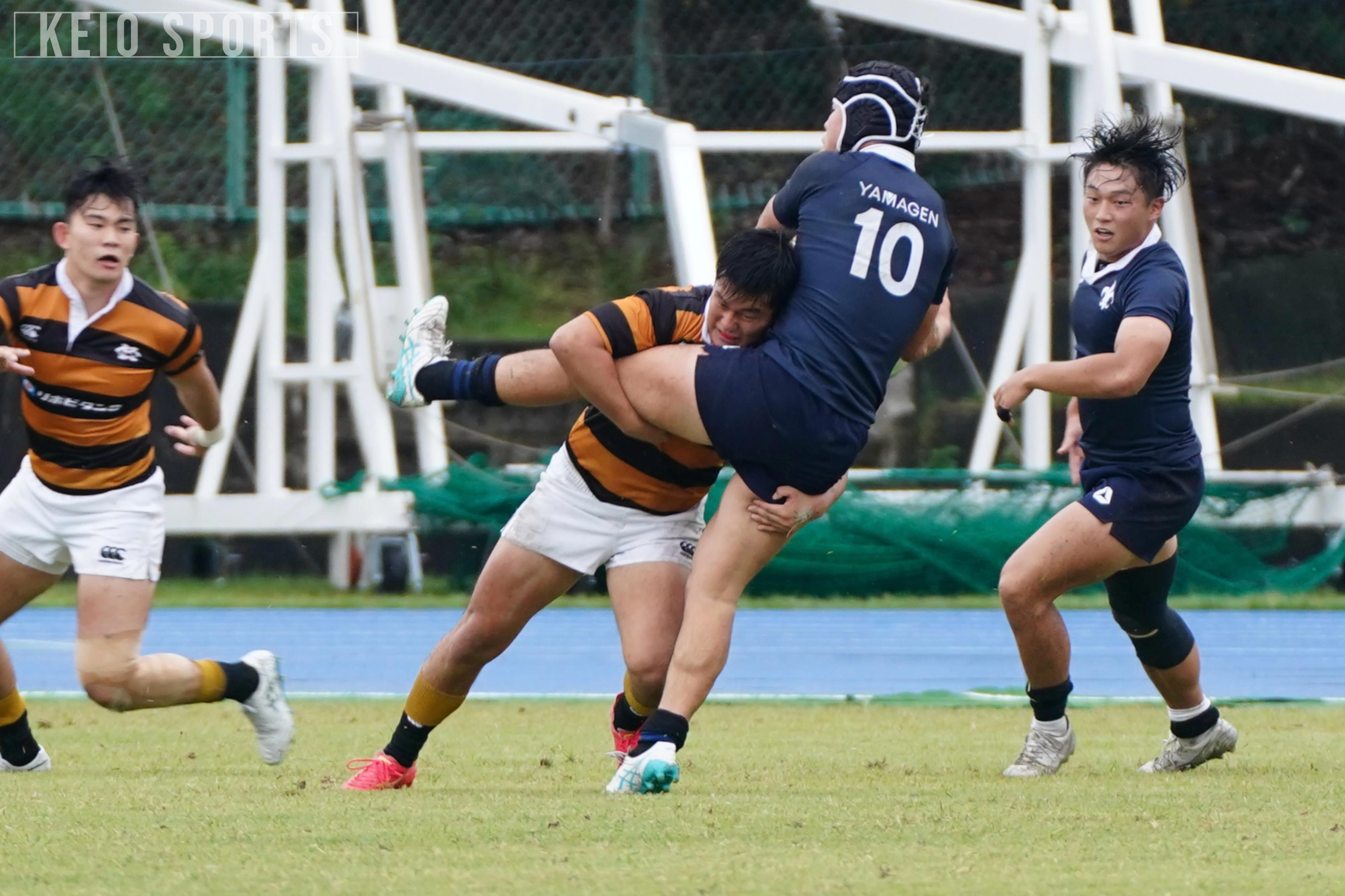小林:僕は春はずっと怪我で欠場していて、グラウンドの外から見ていて大学ラグビーのレベルの高さに驚いていました。ただ、夏に復帰してからは先輩に色々教えてもらいながら成長できていると実感していて、対抗戦も3試合中2試合に出れているので、個人としては良い状態で来れているのではと思っています。この後も出場を続けていれば更に上達出来ると思うので、個人としてはもっと試合に出場したいと思っています。チームとしては、まずディフェンスがとても良くて、オフェンスも竜輝さんや椋平さん(今野椋平/環4・桐蔭学園)を中心にBKから仕掛けてトライを取れるシーンが多いので、チームとしても今年は結構強いんじゃないんですか?