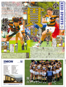 目標の「日本一」に向け、自分たちのラグビーを貫き続ける慶大蹴球部を、ラストシーズンに懸ける両選手の活躍を、この紙面と共にお楽しみいただけると幸いです!