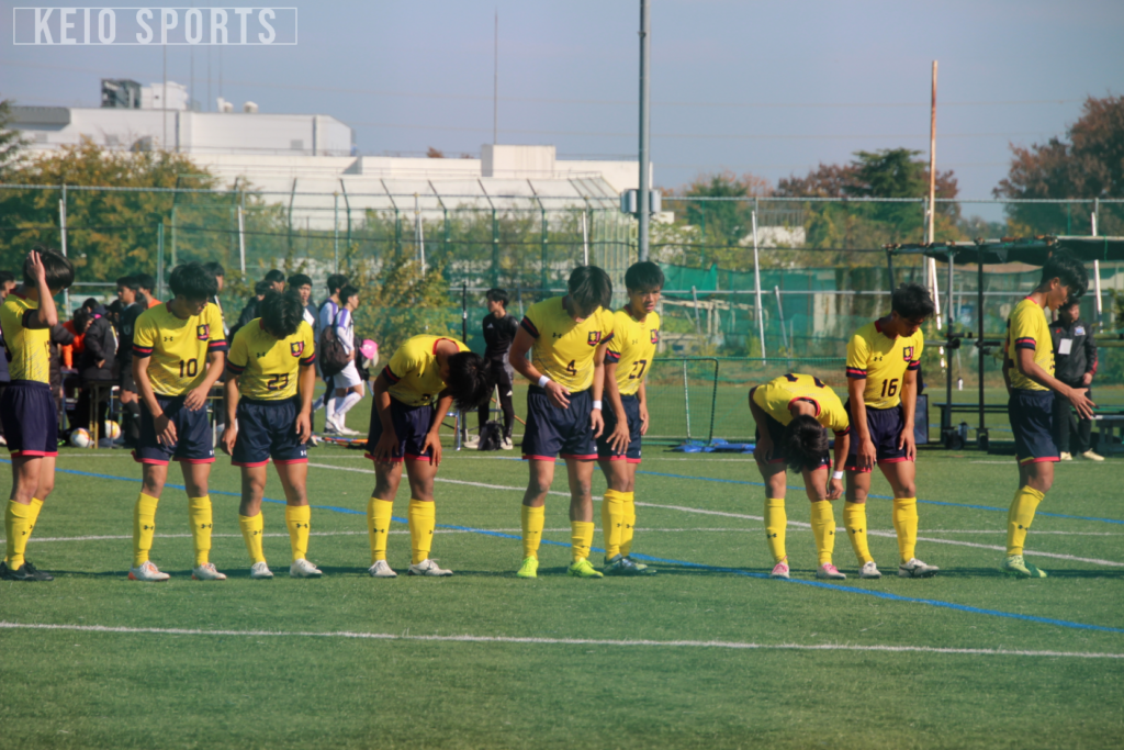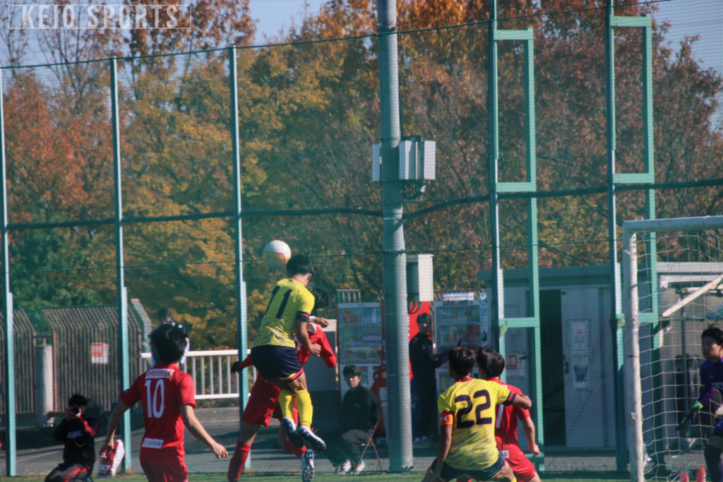 さらに82分、三浦大のコーナーキックが相手のオウンゴールを誘い追加点を獲得する。このまま試合をクローズしたい慶大だったが84分、カウンターからオフサイドギリギリの抜け出しを許し、そのままシュートを決められ1点を返される。直後の87分、左サイドでドリブル突破を許し、クロスを上げられる。そのボールをクリアできず混戦状態になり、最後は相手選手に押し込まれ同点に追いつかれる。このままでは終われない慶大は90分、左サイドで三浦大が仕掛けクロス。このボールに反応した阿部が打点の高いヘディングで合わせゴール。ポジション変更が功を奏した形となり、土壇場で勝ち越しに成功する。