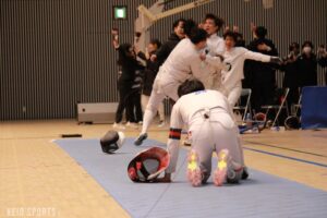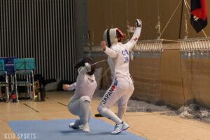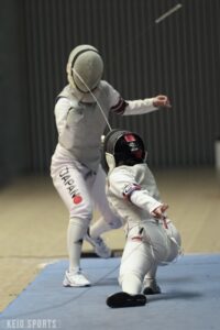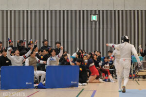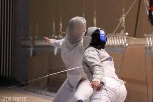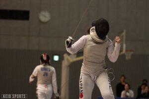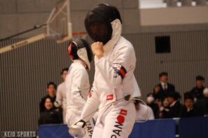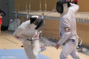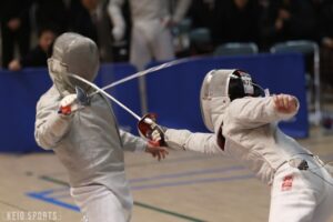 第78回フェンシング早慶戦が13日、日吉記念館にて開催された。慶大は、序盤の女子サーブル戦、男女エペ戦で3連敗し苦戦を強いられるも、4戦目の男子フルーレの勝利を機に女子フルーレ、男子サーブルと3連勝。3勝3敗の五分に持ち込むも、総得失点差で僅かに及ばず準優勝となった。学生選手権3冠の男子エペ戦が延長戦の末に敗れる波乱、エース飯村彩乃(法2・龍谷大平安)躍動の女子フルーレ戦の大金星など、早慶両校の実力伯仲の好ゲームとなった。