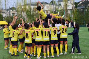 チームは、持ち前のパスワークで猛攻を見せ、8―1で大勝。今季のビジョンとして掲げた『賢く泥臭く、虜にさせる』サッカーで、2部優勝・1部昇格を決めた。