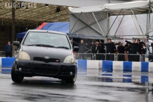 2年生の部が始まったところで、早大の車両が故障するアクシデントが発生。自走不可な状況となり、試合の公平性を保つため、両校ともに慶大が予備で保有していた黒色のヴィッツで走行することに。厳しい寒さのなか、予想外のアクシデントに見舞われるも、両校とも懸命に走り抜いた。