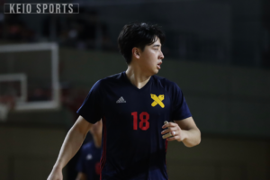 終盤は嶋田が個人技と決定力で存在感を際立たせる。左サイドでの切り込みに加え、アンダーハンドからの強烈な一撃、そして高い打点からのジャンプシュートと、多彩な得点で攻撃をけん引。慶大はこの時間帯に生き生きとしたプレーを取り戻し、苦しい流れの中でも追い上げられる手応えを示す。しかし、前半の連続失点が響き、リードを奪うまでには至らず、ビハインドのまま前半を終える。
