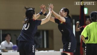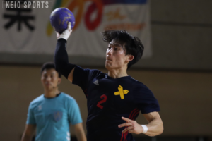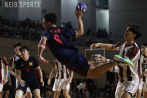 慶大は序盤、積極的な仕掛け、集中力の高い守備で拮抗した入りを作った。しかし中盤以降は相手の堅い守備と速い切り替えに押し込まれ、攻撃が停滞する中で速攻を許して連続失点。点差が開いた場面で7人攻撃を選択すると、守備の好プレーを起点に得点を重ね、前半終盤に反撃の形を作って折り返した。後半は立ち上がりから一気に流れを引き寄せ、好守からのロングスローなどで勢いを加速。連係からの得点や1対1を着実に決めて逆転し、会場の空気も慶大のリズムになった。しかし中盤以降、再び連続失点して主導権を奪われ、終盤は食らいついたものの早大の勢いを押し返しきれず、最終的に6点差で敗れた。