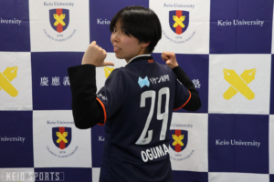 2月3日、慶應義塾大学三田キャンパスにて、ソッカー部の4年生3選手による『プロチーム入団内定記者会見』が行われた。本記事では、女子部主将でRB大宮アルディージャWOMENに加入する小熊藤子(環4・山脇学園/スフィーダ世田谷ユース)について、慶大での活躍や会見で語った意気込みを紹介する。