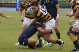 第3節・立教大戦では2トライ2ゴールを記録。この試合では自陣で立教大のパスをインターセプトし、素早く相手の背後にキックを蹴ってトライを演出するなど、強気なプレーでスタンドを沸かせ、今季2度目となるPOMを獲得した。第4節以降も、ディフェンスでは慶大伝統の「魂のタックル」を体現。アタックではチームのトライの足がかりとなるラインブレイクを繰り返し、アウトサイドCTBとしての役割を全うした。
