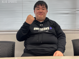 慶應義塾大学UNICORNSでストレングスコーチ(SC)を務めた橋谷友太朗(経4・浅野)。中学時代はプレーヤーとして活躍しキャプテンも務めたが、怪我に苦しみ大学ではスタッフの道を選択した。マネージャーとして入部後、SCへと異例の転身を遂げ、激動のチームを根底から支え続けた。選手の土台作りに己を捧げた裏方としての「美学」と、4年間の軌跡に迫る。