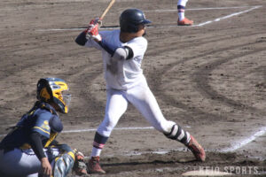 3回、先頭の竹田一が内野安打で出塁すると、今津の犠打で1死二塁のチャンスを作り、上田の適時内野安打で先制する。さらに、一宮知樹(新経2・八千代松陰)、吉田も続き2点目を奪取。その後も、延末の適時二塁打で3点目、福井直にも適時打が生まれ、この回一挙5点を追加する。