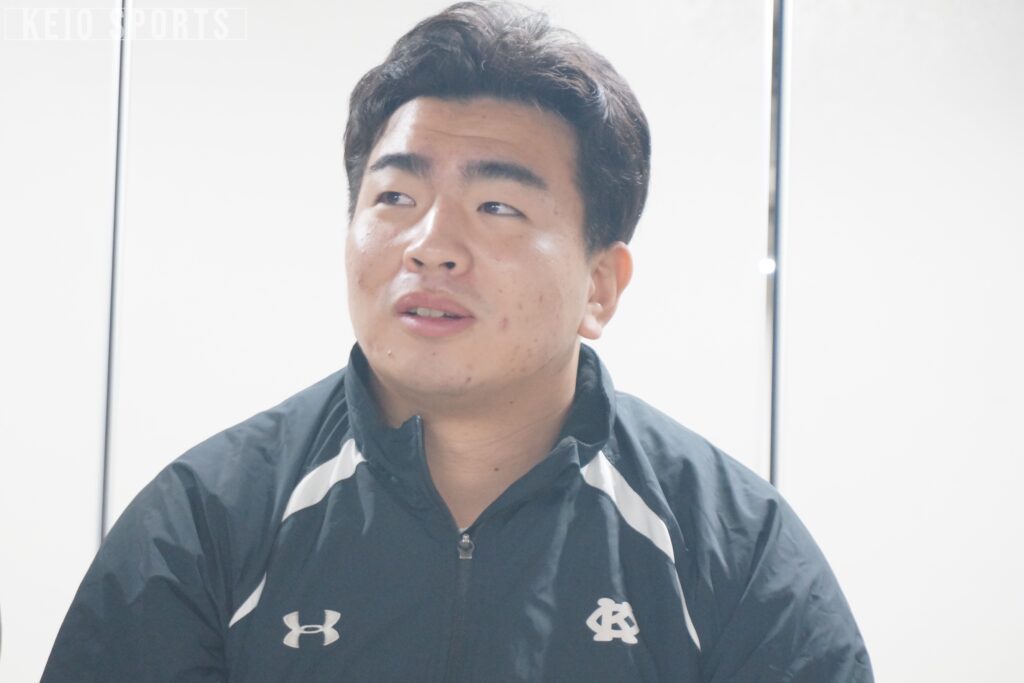 4年間を振り返り、渥美は「いかにグラウンドに立ち続けられるか」の大切さを強く感じたと言う。「タレントのある選手ではなかったため、そこでいかにチームや監督から信頼を得られるかが大事だったので、なるべく怪我をしないようにケアを積み重ねてきた。その中でも、良いライバルがいてくれたからこそ成長することができたなと思っている」。中山、山際毅雅(令7法卒・県立浦和)、山田空太(令7経卒・慶應義塾志木)藤森貴大(経3・慶應)といったライバルの存在が特に渥美にとって大きかったと語った。