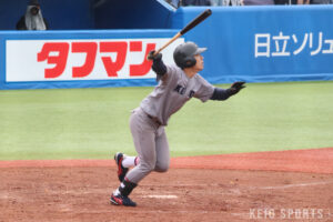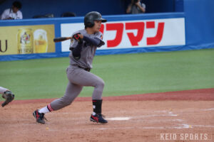 高校時代は主に捕手としてプレー。慶大野球部に入る前は「1年春からリーグ戦に出て、活躍してやろう」と意気込んでいたが、実際に入部してみるとそのレベルの高さに唖然とする。実際に1年春から登板した外丸東眞(環4・前橋育英)のキャッチボールを初めて見た時は「レベルが違った」という。そんな中でも1年春のフレッシュトーナメントでは、微かな手応えを感じていた。法大との試合で、高校時代にも対戦があり当時は全く手が出なかった吉鶴翔瑛(令7卒)や山城航太郎(令7卒・現日本ハム)から安打を放ち、得意の打撃面でアピールを続けていた。