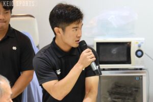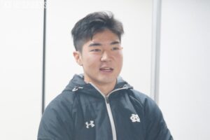 主務としてチームの前に立つ機会が増える中で、中井の変化を感じたと語るのはチームメートのSH橋本弾介(法4・慶應)だ。「昔からすごく真面目な人ですが、主務になってからは周りに対してより強く言えるようになったと思います」。愚直に組織と向き合い続けるなかで役割を確立し、存在感はより大きくなったという。組織として1人の選手生命に責任を持つ重要性を噛み締めながらも、「いろいろなことに気を配りながらやってくれて、本当に主務が中井で良かったと思います」と厚い信頼を口にした。