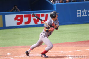 広池:うーん…。僕は満遍なく穴なく打ってくるタイプが苦手なんですけど、今年はあまりそういったバッターがいなくて。それで言うと明治の田上くん(=田上夏衣、商3・広陵)とかかな。彼は穴がないというか、苦手なところがない印象があります。