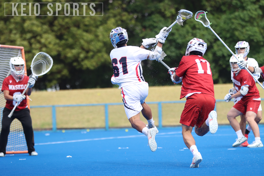 第4Qは6-3と慶大の3点リードで迎えたが、試合開始早々シュートを決められ、流れが早大に傾きかける。しかし、慶大も・鈴木孝人(新法3・学習院)の巧みなロールダッジで早大のディフェンスを抜き去りそのままシュートを決め、すかさず1点を返す。守備では、G・岩城敦大(新法4・慶應)が好セーブを連発し、早大の追加点を許さない。さらにAT・岸敬太郎(新法4・慶應)がシュートを決め、8-4とリードを広げたものの、その後は再び失点して3点差へと縮まる。溝部航貴(新総3・國學院久我山)がフェイスオフで勝利すると、AT・鈴木孝人やAT・橋山隼人が果敢に攻めの姿勢を見せシュートを打つも、ゴールネットを揺らすことができない。また、AT・福田天真が早大のクロスを奪い取るファインプレーを見せるも得点には結びつかないまま終盤に失点を許してしまう。その後の早大の追加点は許さず試合は8-6で慶大が勝利し、六大学戦2連勝を飾った。