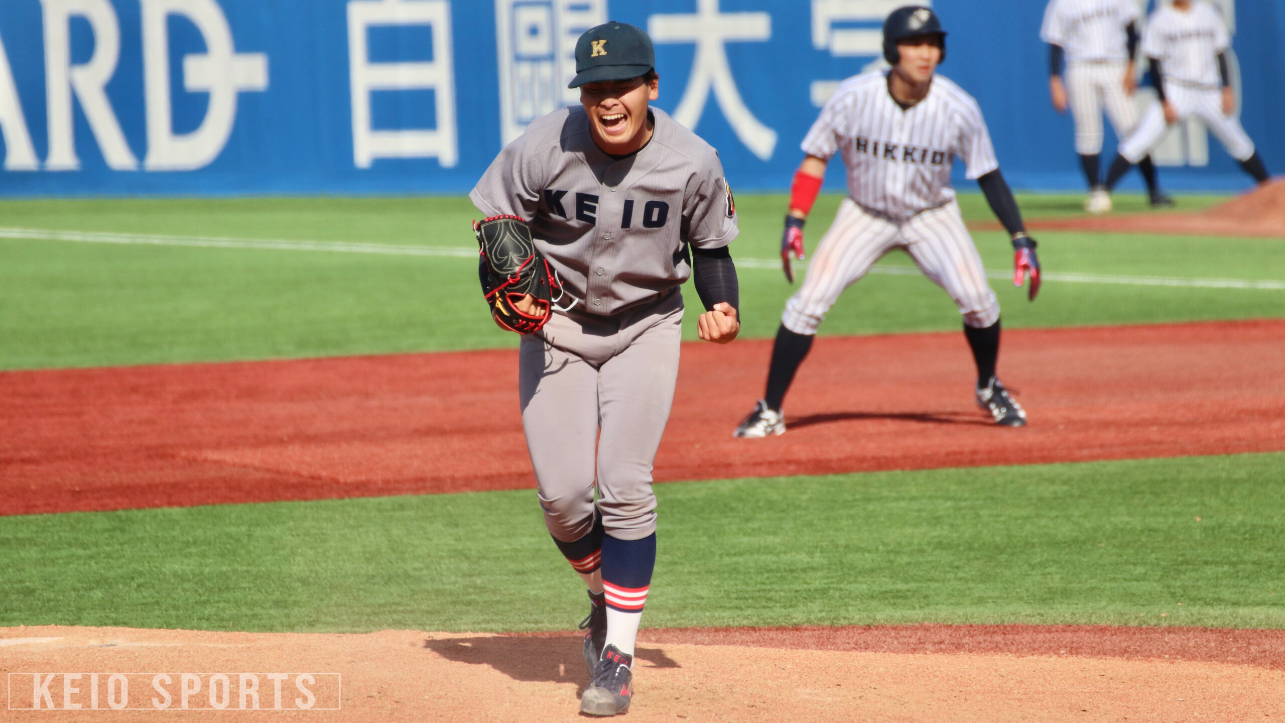 7回裏、鈴木佳は本間からこの日3つ目の三振を奪うも、2死から木津寿哉(心理3・國學院久我山)に中安打、その後盗塁も決められる。さらに代打・新垣熙博(スポ4・帝京)に四球を許し、2死一、二塁で小林隼という一打同点のピンチ。ここで慶大は鈴木佳から水野敬太(経3・札幌南)にスイッチする。水野は小林隼を二ゴロに打ち取り、火消しに成功する。